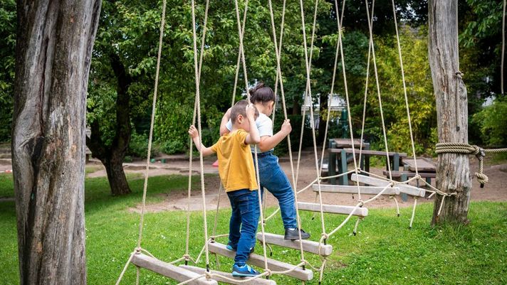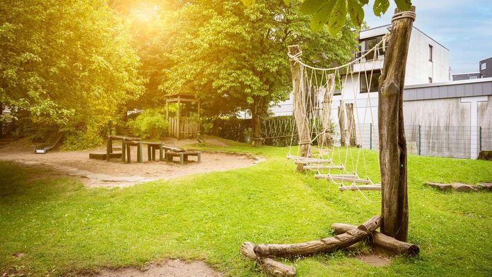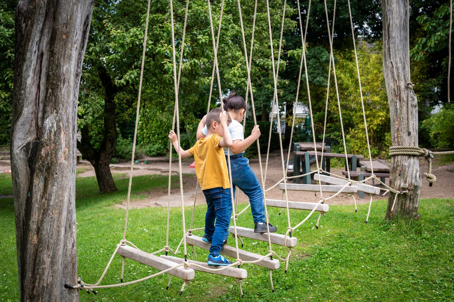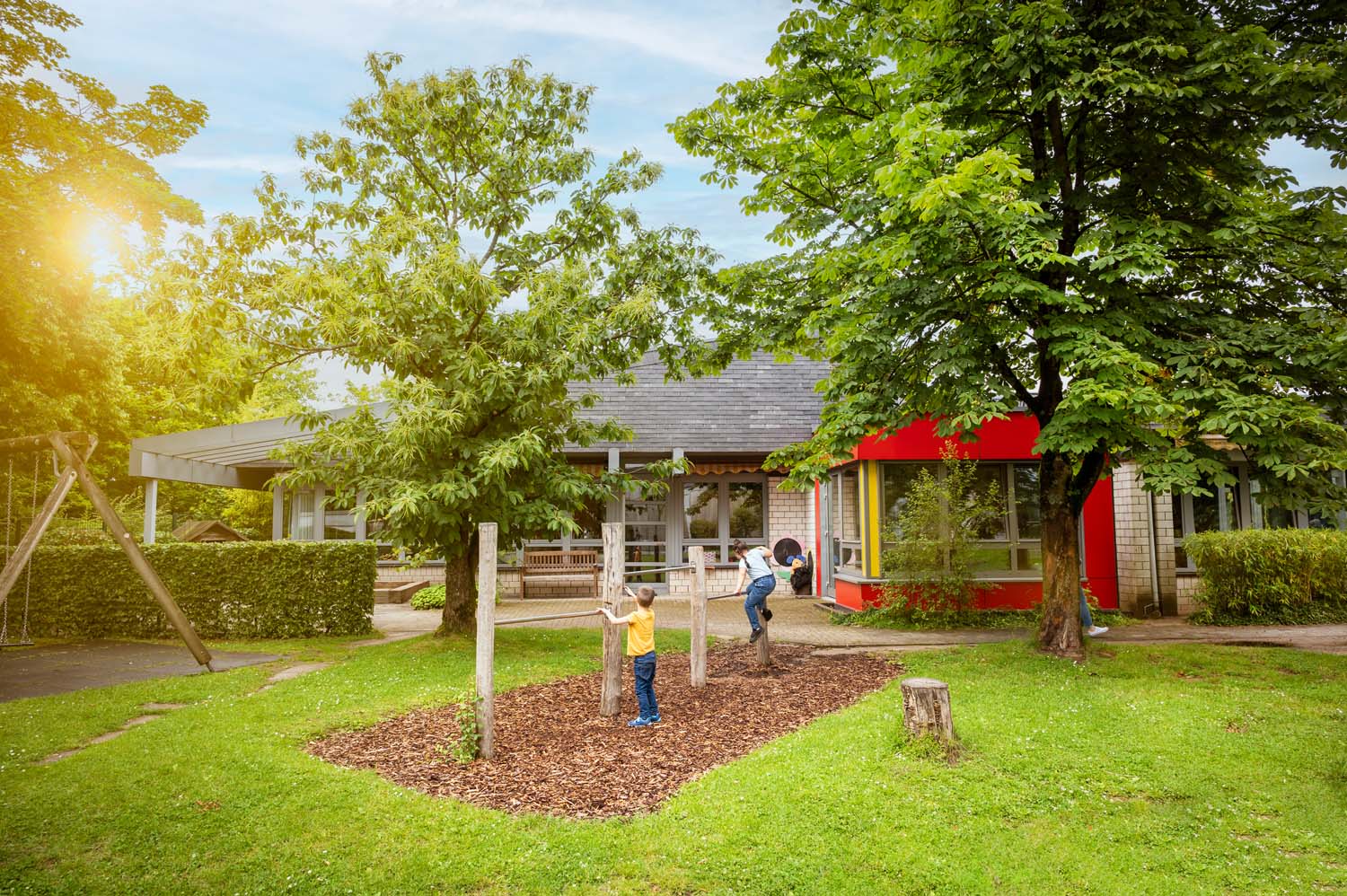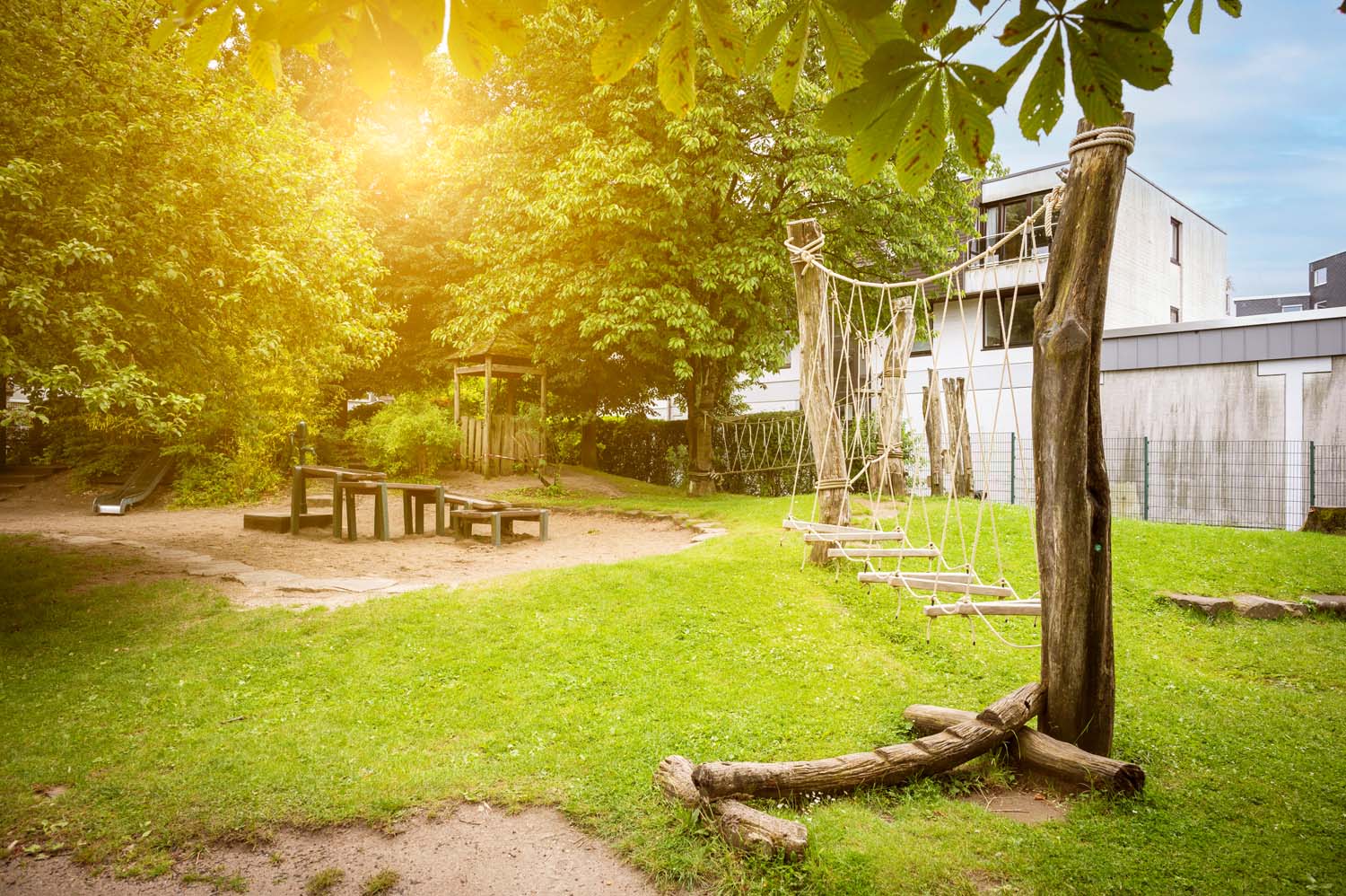 Unser Außengelände gibt den Kindern die Möglichkeit, ihre grobmotorischen Fähigkeiten und Fertigkeiten zu üben. Es stehen verschiedene Spielgeräte zur Auswahl.