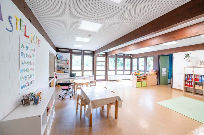 Die Gruppenräume sind geschickt in verschiedene Spiel- und Funktionsbereiche unterteilt. Auch Materialien und Farben werden in unseren Räumen sorgfältig aufeinander abgestimmt, da diese Elemente das Verhalten der Raumnutzenden beeinflussen. Es ist uns sehr daran gelegen, die Räume für Kinder und Mitarbeitende freundlich und pädagogisch wertvoll zu gestalten.